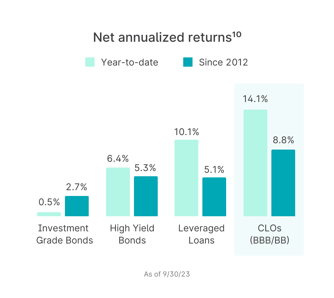 We believe the BBB and BB tranches of CLOs have the opportunity to deliver some of the most attractive risk-adjusted returns in fixed income.